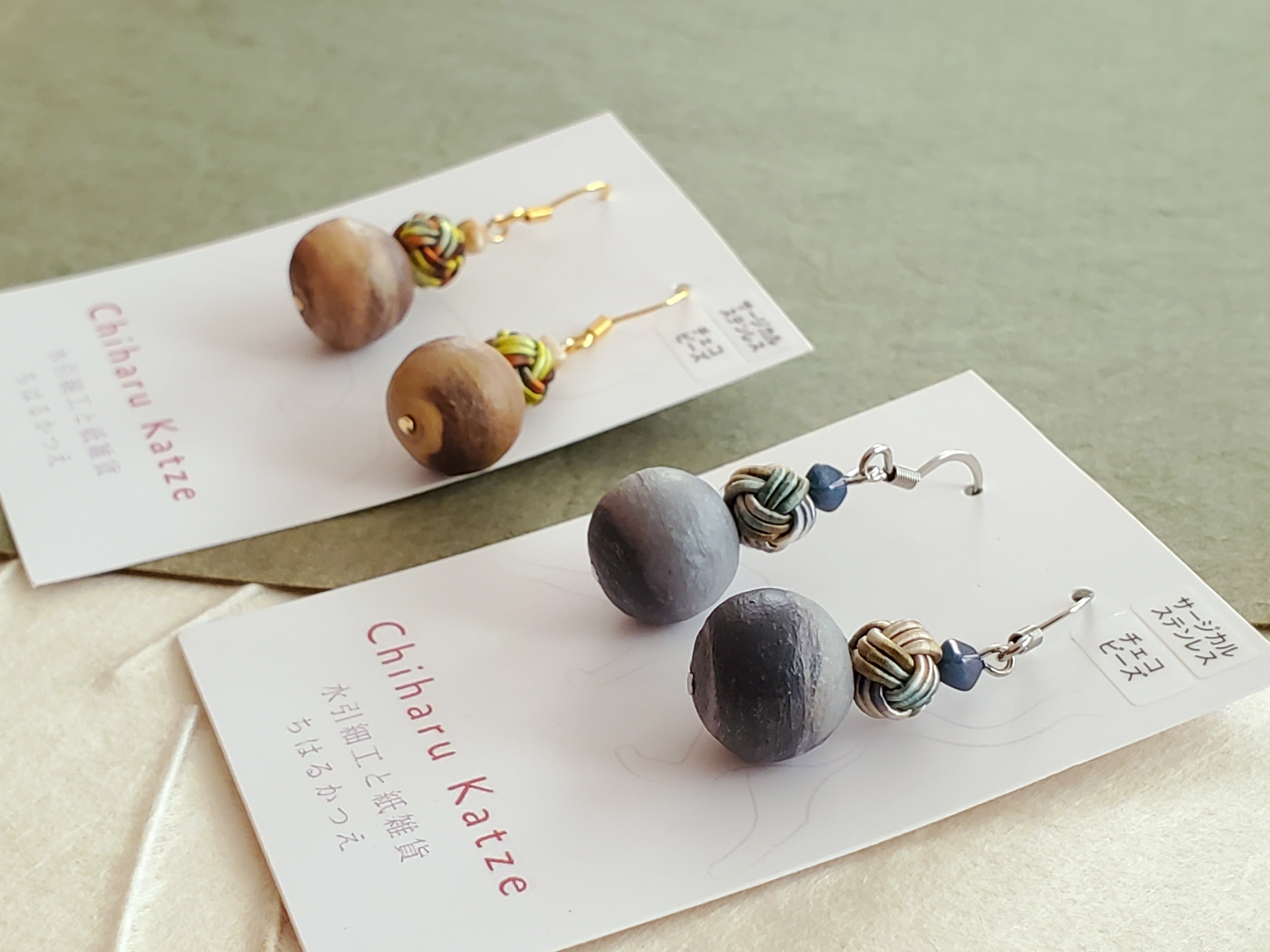 ご注文の際に「ピアス(フック・スタッド)」「イヤリング(ネジバネ・樹脂)」をお選びください。